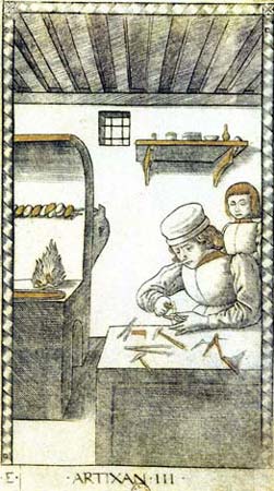 Esse personagem lembra o ourives, que representa um dos nativos do planeta Mercúrio, na série de gravuras atribuídas a Baldini, por volta de 1465.