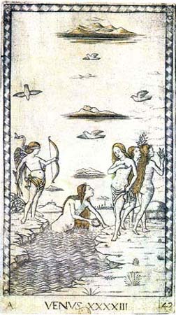 A concha na mão de Vênus é seu atributo desde a Antiguidade. Está acompanhada das três Graças, divindades da beleza, e de Eros, o deus do amor.