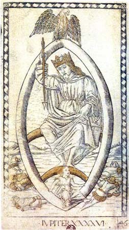 É o rei do mundo, deus romano assimilado à Zeus. Tem a aparência de um rei ou de Cristo em toda sua majestade. A flecha em sua mão representa as poderosas intervenções divinas, punitivas.