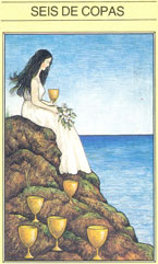 | No Seis de Copas, podemos tentar em vão resgatar o que já não existe mais, o que se tornou impossível, mas também podemos ter boas ideias sobre como recuperar o tempo perdido. |