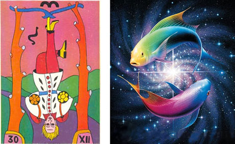 O Pendurado no Balbi Tarot e uma representação do signo de Peixes